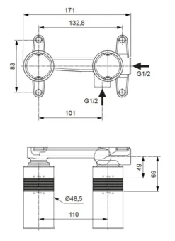 - bevestiging standaard moer G 3/4″, S-koppelingen G 1/2″ x G 3/4″