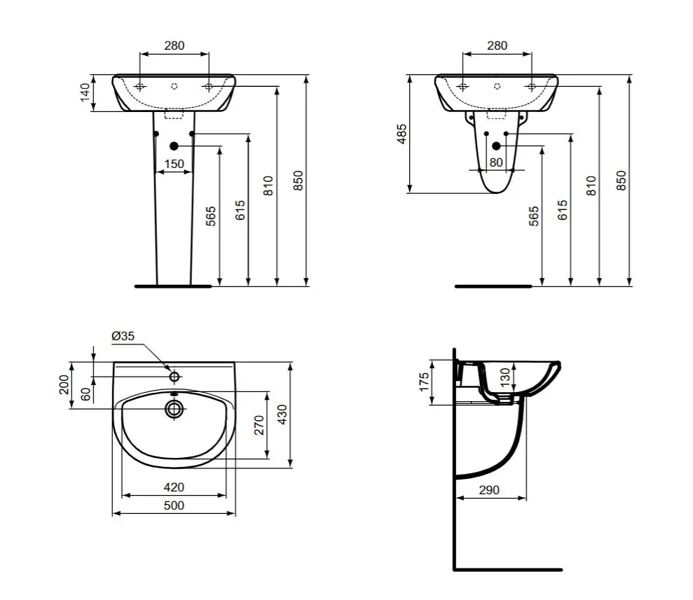 Wandgemonteerde keramische wastafel
