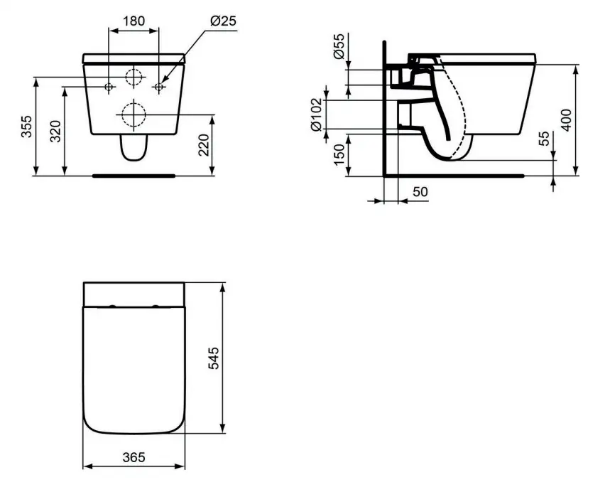 Toiletten met AquaBlade® technologie kunnen niet op installatiemodules met afzuiging worden geïnstalleerd.