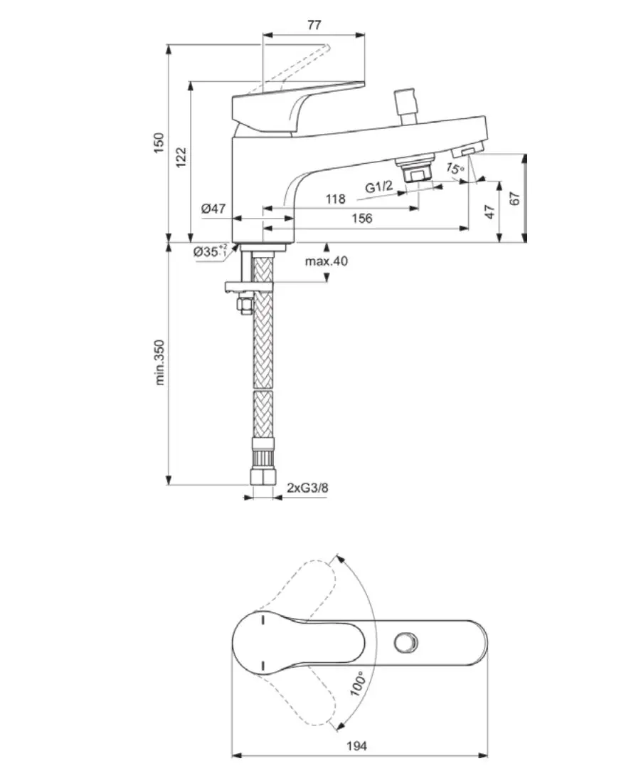 - vaste uitloop 156 mm
