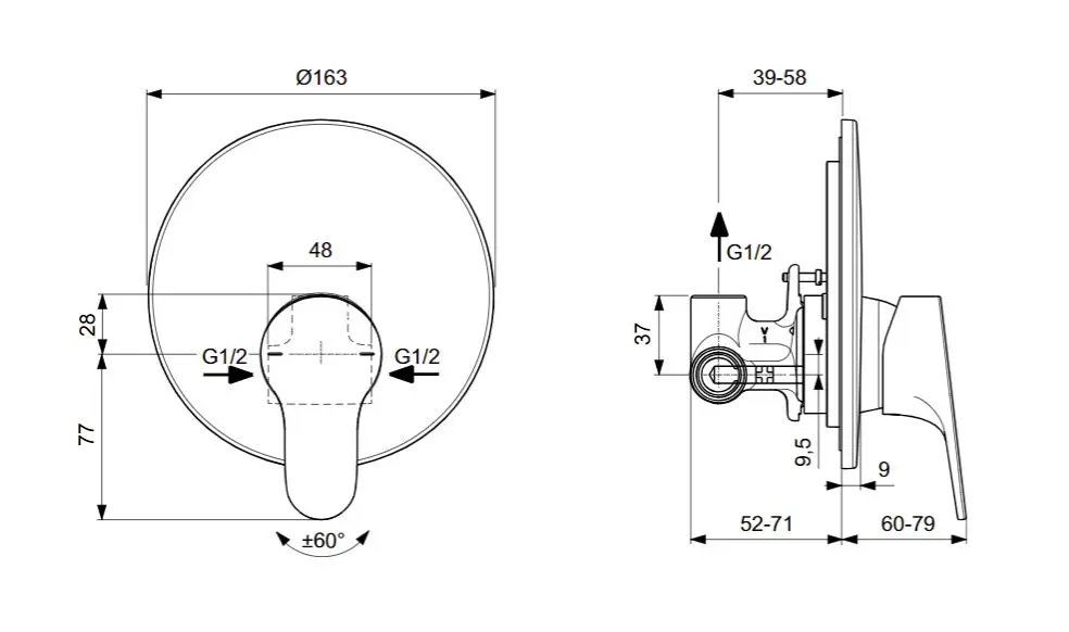 - aansluiting G 1/2″