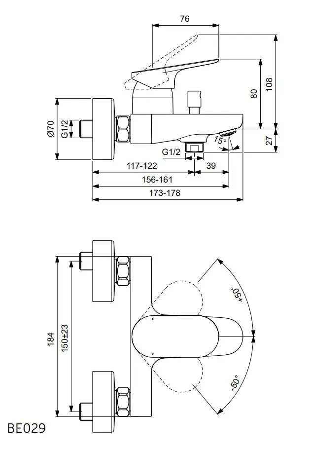 - hendelbediening (50° draaihoek naar beide zijden) met rode en blauwe indicator