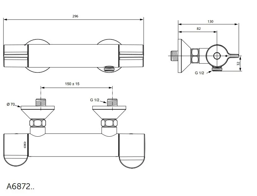 Thermostatische douchekraan, wandgemonteerd