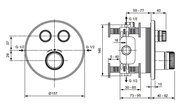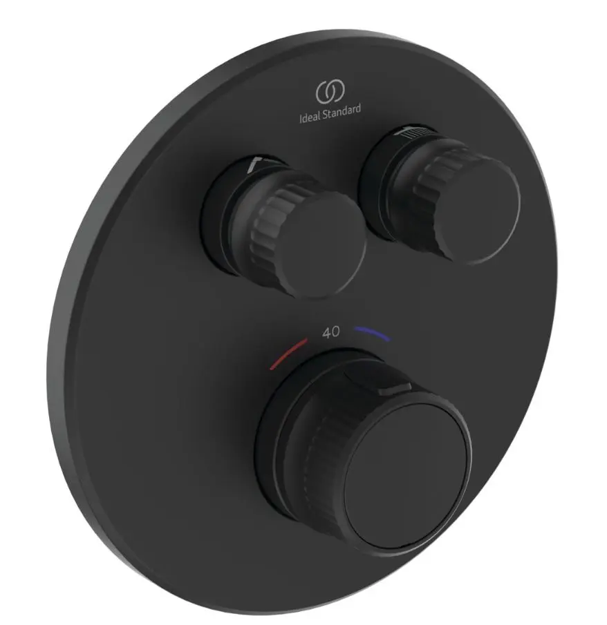 - één draaiknop voor twee functies: indrukken om in/uit te schakelen, draaien om het debiet aan te passen