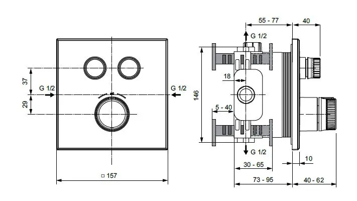 - één draaiknop voor twee functies: indrukken om in/uit te schakelen, draaien om het debiet aan te passen