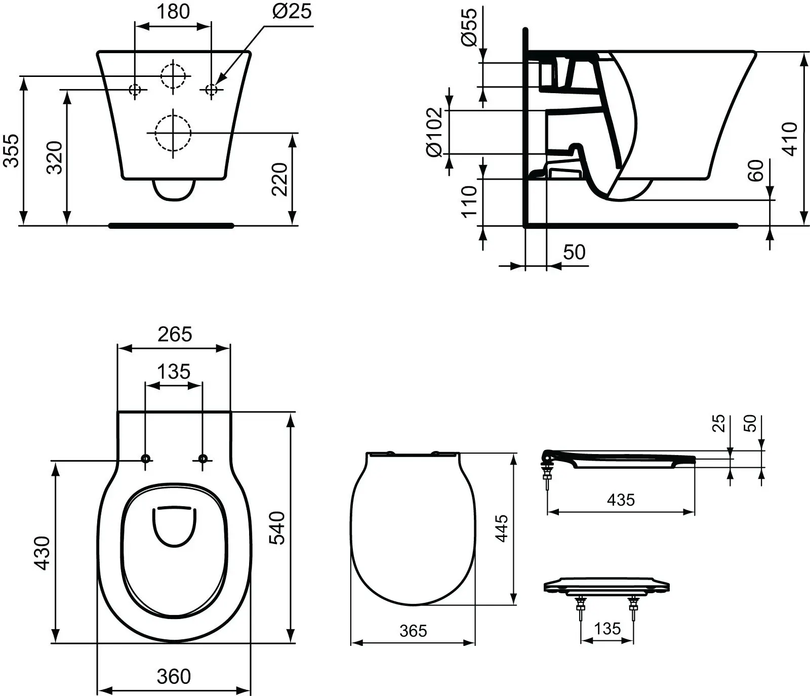 Dit Ideal Standard Connect Air wandcloset is te installeren in combinatie met een inbouwtoilet en wordt geleverd samen met een compatibele toiletzitting die niet alleen ultradun is, maar die ook uitgerust is met de moderne SoftClose technologie, d.w.z. een langzaam sluitmechanisme. De zitting kan gemakkelijk worden verwijderd zodat je tijdens een poetsbeurt alle hoeken van het toilet makkelijk kunt bereiken.