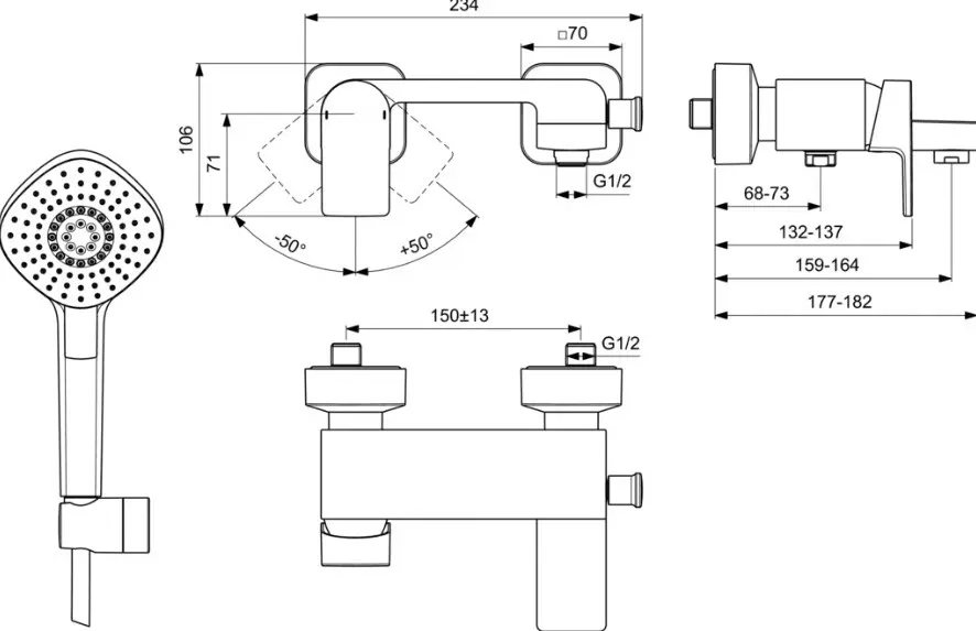 - automatische omstelling douche/bad