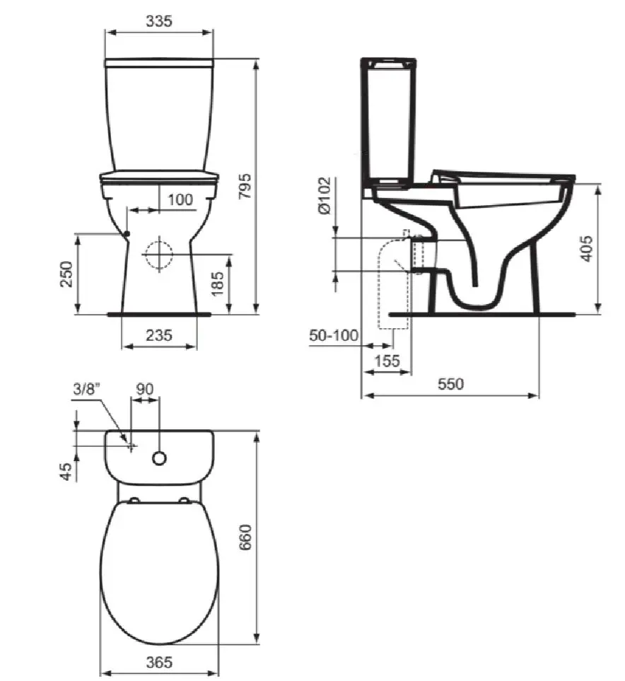 - watertoevoer van onderaf