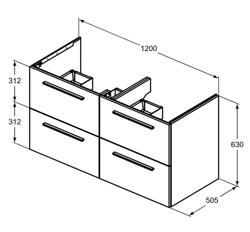 - afmetingen: 1200 x 630 x 505 mm (BxHxD)