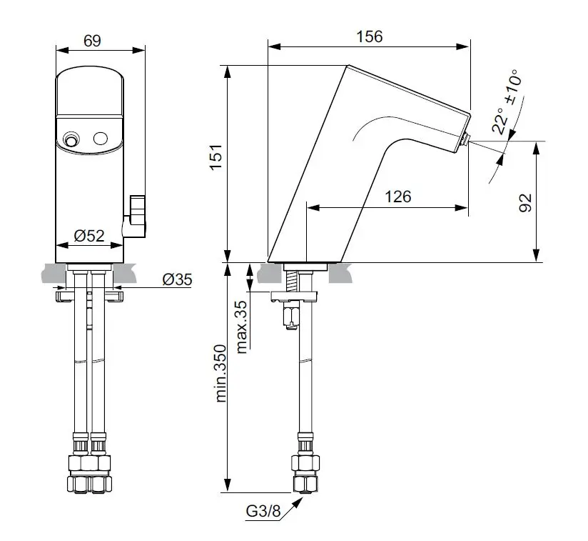 - kraanhoogte 151 mm