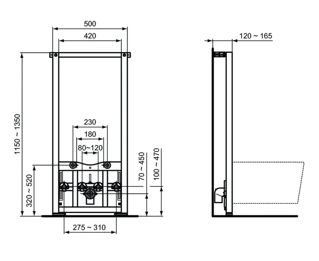 Voorwand installatiemodule voor wandbidet