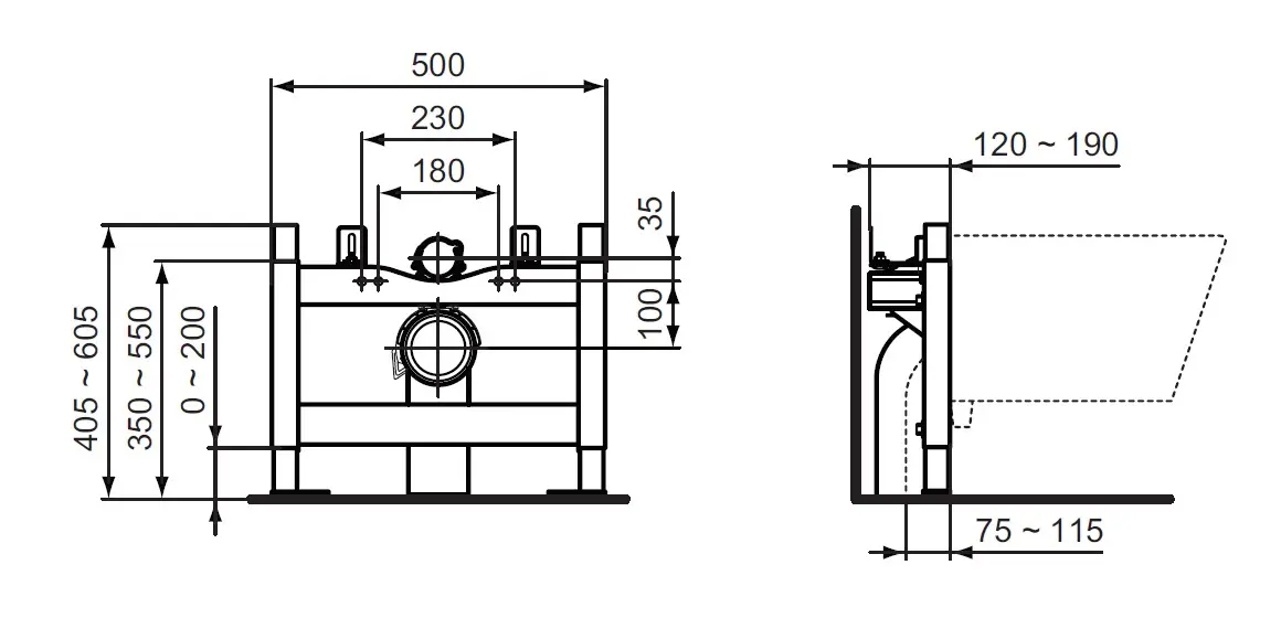 - voor wandclosets met hartafstand montage 180 of 230 mm