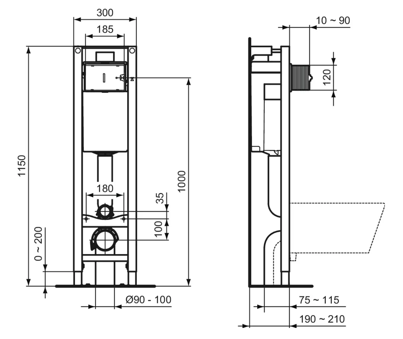 Eco Frame M voorwandinstallatiemodule voor wandclosets