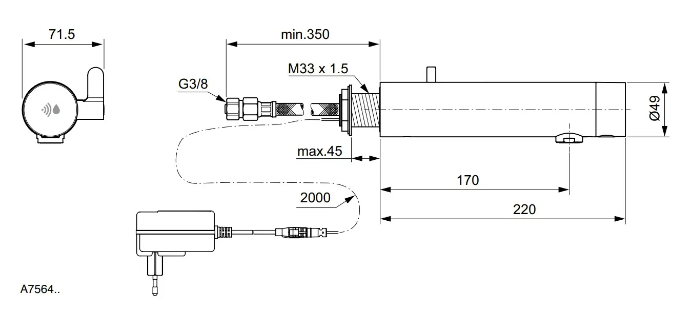 - geïntegreerde electronische sensor (infrarood) Aan/uit door bediening met magneetventiel bevestigd in de kraan