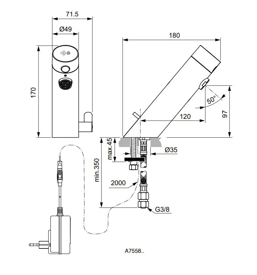 - geïntegreerde electronische sensor (infrarood) Aan/uit door bediening met magneetventiel bevestigd in de kraan