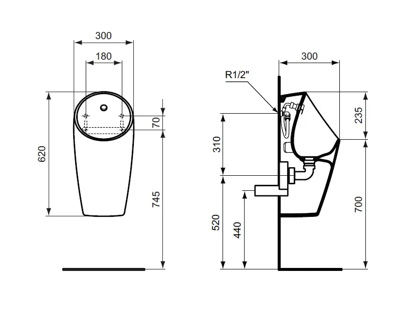 - Anti-splash geometrie ter beperking van spatten rond het urinoir en ter voorkoming van vervuiling van de ruimte eromheen