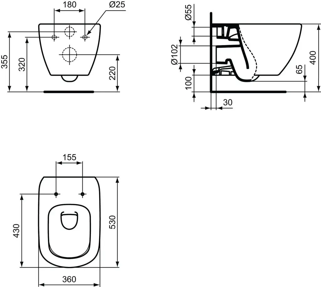 Het Ideal Standard Tesi toilet is ontworpen voor het gebruik met een inbouwreservoir met een spoelcapaciteit van 4,5 l of meer.