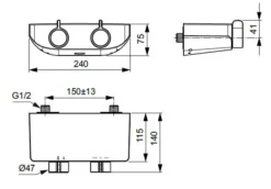 Ideal Standard Ceraplus Safe – Thermostatische Douchekraan Met Medische Hendel, Chroom A5549AA