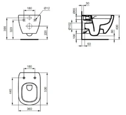 Ideal Standard Tesi – Hangend Toilet Met Toiletbril SoftClose, RimLS+, Zijde Zwart T5361V3